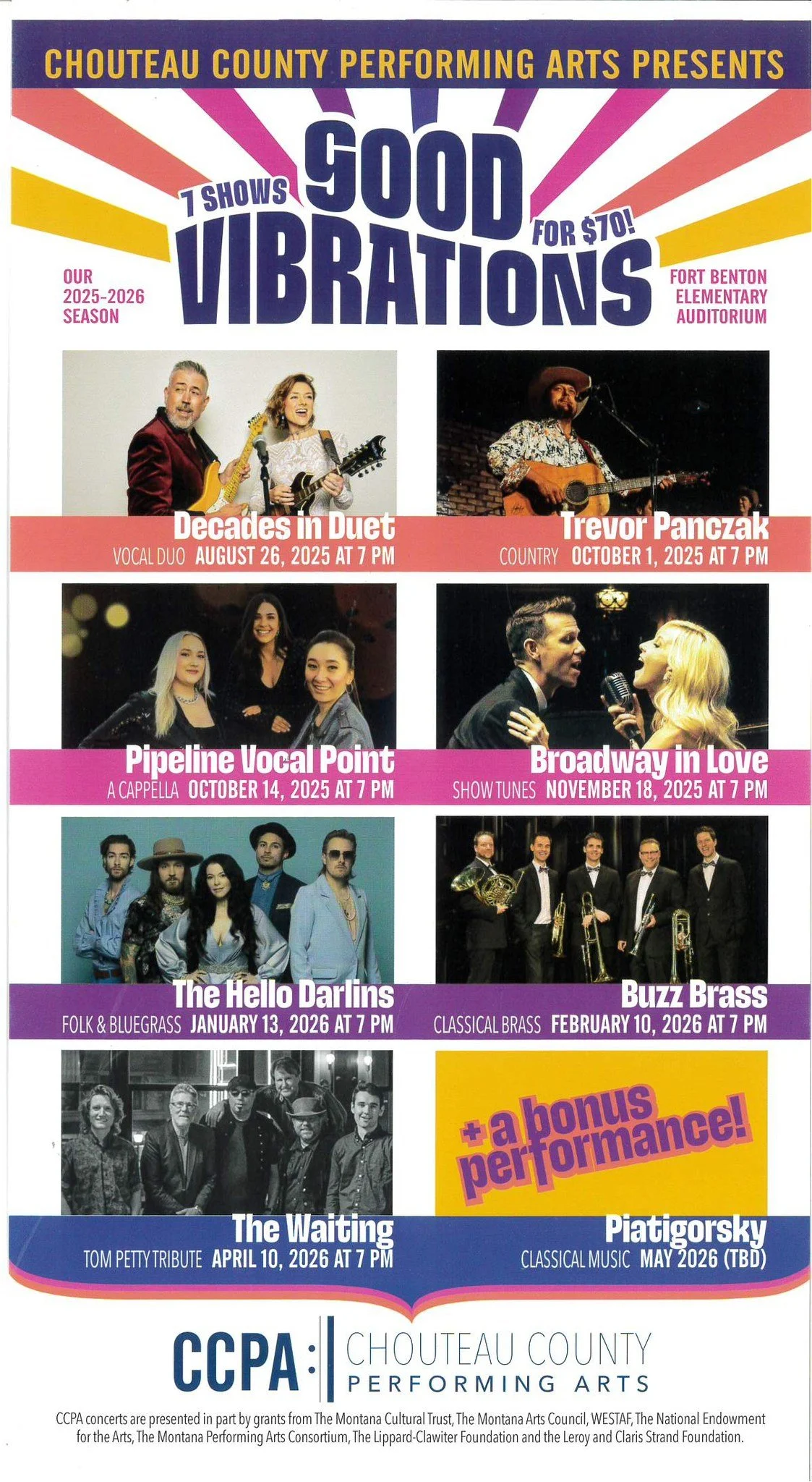 CCPA Performance Schedule Tuesday, May 26, 2026 3:00 PM 4:00 PM 15:00 16:00 Fort Benton, MT 59442 (map) Google Calendar ICS